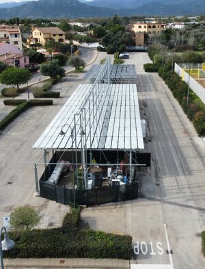 L’impianto è al servizio della generazione di calore ed elettricità di un quartiere tramite una rete di teleriscaldamento e una rete di trasporto di elettricità per un totale di cinque utenze tra cui: a) tre scuole, b) un palazzetto dello sport e c) due colonnine di ricarica auto elettriche. L’impianto è stato finanziato dalla Regione Autonoma della Sardegna all’interno del POR 2023-2020 ed è localizzato nel comune di Pula (CA).